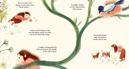 Maybe we should all learn the art of waiting like the child did in the book. Maybe then we will be able to appreciate "A tiny snail leaving a trail.." or "A spider sitting perfectly still.."