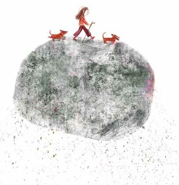 The illustrations are so, so beautiful! They are whimsical, colorful, and messy but also soothing and appealing. I think the illustrations are a blend of crayons and pencil colors. The textures are amazing! The girl and her mommy have two cute dogs as well. Another plus!