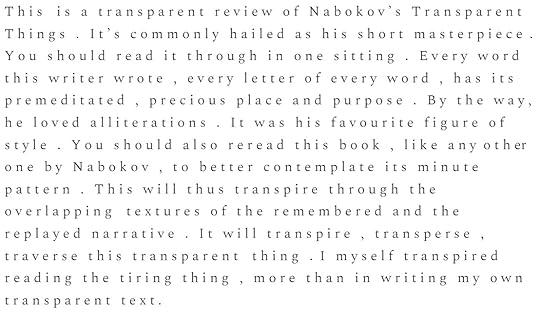 Remarkable even in Nabokov's work for its depth and lyricism, Transparent Things is a small, experimental marvel of memories and dreams, both sentimental and malign.