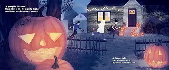 I loved this book. It'd be a perfect autumnal story time pick, not just for its rhyming but for teaching kids about the life cycle of a pumpkin. There are several pages in the back providing more facts and graphs, as well as a recipe! It'd be perfect for a classroom unit. The illustrations are lovely to boot. I can't see a collection or display about pumpkins being complete without this title.