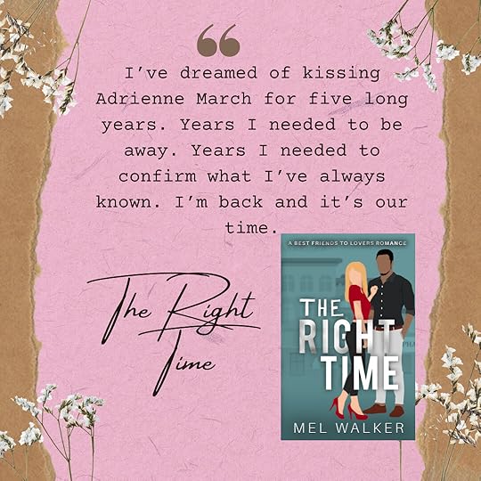 The Right Time is a beautiful & sweet novella about Adrienne and Lucas and their best friend to more relationship journey. This story invokes memories and feelings of being young and in love, taking chances and still coming into your own person at that age. It was a wonderful introduction & read from Author Mel Walker for me.