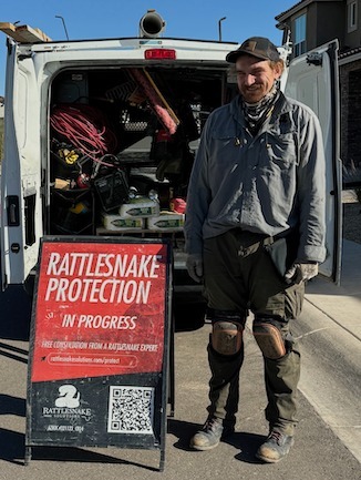 From the author: 😂 😱 Oh the IRONY! As seen on my very own street yesterday! Rattlesnake Protection In Progress. Why's that ironic? If you read my upcoming release THE WIDOW BRIDE you will discover why my jaw dropped and then I chortled when I saw this gentleman working in my neighborhood just down the street. He was kind enough to allow me to photograph him and gave post permission. If you need rattlesnake protection he's your guy! If you need a great read, give THE WIDOW BRIDE a try!