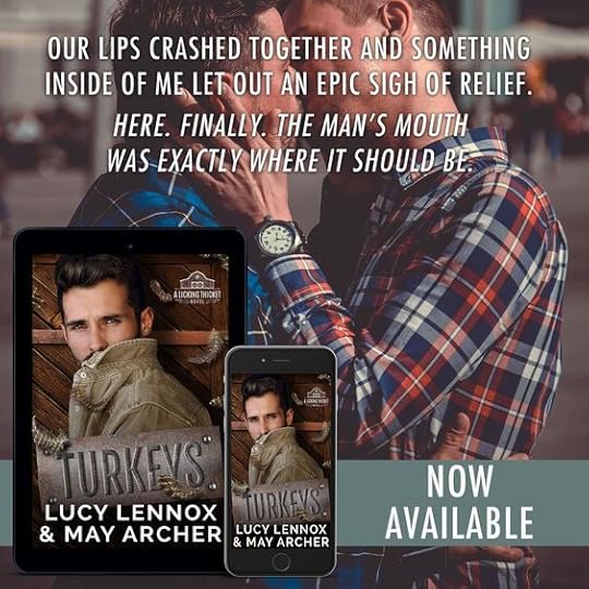 Turkeys is book four in the Licking Thicket series by Lucy Lennox and May Archer. I have been madly in love with this series since book one, but hadn’t gotten to this newest book. BIG...MISTAKE!!! This book was just everything. So funny, so sweet, so wonderful. Can you tell yet? I loved it so much!