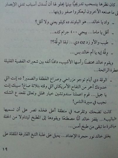 * كااااك.. كاااك* 2) بناء الشخصيات: خدووها منّي, جو الشخصية المعذبة الي مش بتلوكلوك ده مش حلو عشان صحة القارئ آه و الله. احنا مش عايزين نجيبله كرشة نفس.. آه .. بحبحها معاه و خليّ البساط أحمدي.. مثلا البت خلود التخينة ده اتعرضت لتحرش عنيف في أول الرواية في ميدان التحرير, متقلبهاش بأه غم ونكد على القارئ و تقعد تكتب عن اللي بتحس بيه البت من دكهم من قرف من نفسها و الحياة و كده, لأ تجاهل الحدث المهم ده في روايتك و ركز في الواد الحليوة اللي أنقذ البت بالصدفة,.. خليك مركز في متعة القارئ و بس.. شخصيات مين يا راجل صلي على النبي..! ________________________________