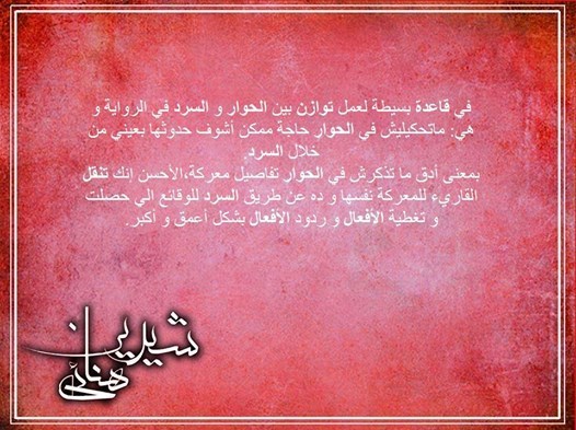 * بلوبوب.. بلوبوب* 4)الحوار: عارف الحوار الممتاز اللي بيخدم الحكاية و بيدفعها لقدام عشان تطور الأحدث؟ هه! عارفه؟ ... .. .. إياك بقى تكتبه. ده عبط, الكتاب الخايبين بس بيستخدموه.. افتكر انت مين, هه؟! .. قول ورايا أنا كاتب رواية سينمائية.. يبقى هتكتب ايه يا حبيبي حوار ساذج ملهوش أي لازمة و ممكن يتشال عادي كده من الرواية.. بس لييييه, مش قولتلك كتر الصفحات يا روح خالتك, احشي احشي لحد ما يتقطع نفسك.. و مثلا هنا عندنا في طغراء مثال نموذجي لكده.. الكاتبة تطورت فيها, و بالإضافة للغة العامية الضحلة اللي خلتها تفضل لفظة " ضـــهـر " على "ظهر" في نفس الوقت اللي فضلت فيه جملة " يا رجل " على " يـا راجـــل!! ", فالكاتبة زودت عليهم أسلوب تحفة تحفة .. و كتبت مقاطع حوارية كاملة بلغة أرمينية و الله .... أيوة أي كاتب عادي ممكن يكتب عربي عادي و يتقال انها بلغة أرمينية, بس دول هبل, خليك أنت ناصح, و خلي القارئ ميفهمش حاجة.. و يفهم لييه؟!! هو بيقرأ عشان بيستمتع بس, مش مشكلتك بقى أنه غبي و تعليمه حكومي.. افتكر كلمتي يا حبيبي.. خلي قوقل دراعك اليمين في الحاجات ده. _______________________________________
