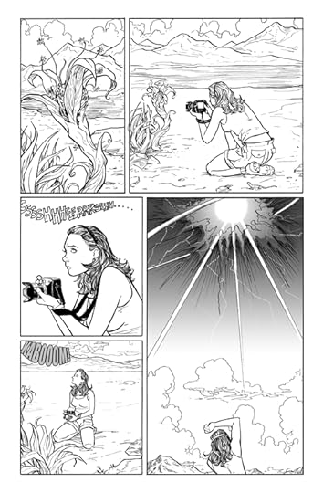 So, Moon Lake is the first volume in what's kinda sorta a superhero story. At least, it has the trappings of a "superhero origins" story - Julie Martin is a broke photographer who's clinging to denial while her husband pesters her to sign the divorce papers, when she happens to observe some sort of test going on above a desert Air Force base. While she's snapping pictures, the test pilot of an experimental super-suit gets blown out of the sky. By her own people. There are definitely government baddies here, though by the end of volume one we're still not sure which of the MIB are bad guys and which, if any, will turn out to be good guys.