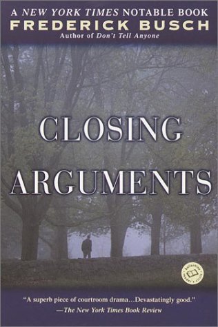 The late Frederick Busch's books just kept getting better and better. CLOSING ARGUMENTS, his 17th book, is a darkly disturbing - and I mean REALly disTURbing - novel of murder and sexual obsession (with an unhealthy dose of S&M and bondage in the mix). Let's see, there is also a close look at post-traumatic-stress-disorder, as experienced by both victims of childhood abuse and Vietnam combat veterans. Attorney Mark Brenner and his client, Estella Pritchett, are two kinky characters you will not soon forget. Their lawyer-client relationship becomes dark and dangerous all too quickly. Both hold dark secrets that are at the heart of this twisted story. A bit of King, a bit of Roth and a LOT of Frederick Busch. Suspense is too mild a word to describe this story. And the ending, well ... You'll just have to read the book. Higly literate, deeply disturbing, I recommend it highly.