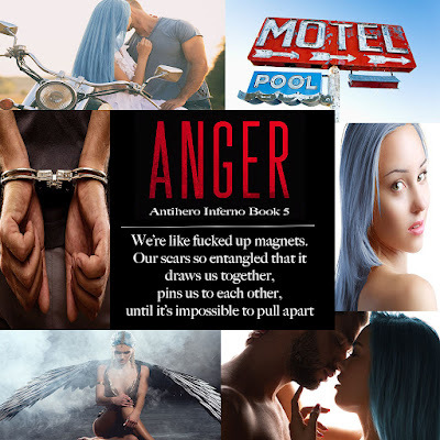The Inferno guys is made up of nine guys whose fathers work together. They want to take over their businesses. The game started back in high school. Each guy looking for a suitable mate. So far Tanner, Gabriel, Mason, and Ezra all have a partner. Now it’s Damon’s turn. … Damon is a man with anger issues. It started in high school when he was captured on weekends by his father to fight. He used to share Emily with Ezra, but that is no longer an option. Damon finds comfort in a blue haired dancer at Myth. … Amélie is a dancer in a cage who hustles guy for money. She’s not the smartest or most intelligent person but she’s good at dancing. She knows nothing about Damon’s secrets, yet what she sees in him is familiar. … There are nine Inferno guys and nine books in the series. Each book is dedicated to finding the perfect match for each of them. In each book the guys are one step closer to finding out the trouble their fathers are in, … Lily White introduced Treachery, Fraud, Violence, Heresy, and Anger. Only four more Antiheroes to go. These nine books can be read as standalones, yet to better understand each character it’s best to read the books in order. Anger is Damon’s moniker. He plays an unfair game of claiming Blue by allowing questions for an article of clothing. … When I started this series I had it in my head that the games the Inferno guys played with others in high school would carry thru with all these guys. I now realize that was Tanner’s way of catching his girl. Every guy has a different strategy for attracting a woman. The game is different yet it’s still a game. I keep measuring each book with the first one which knocked it out of the park. … The long awaited release of Anger is finally here. Damon is anger personified with battle scars lining his body. He wears his scars as a reminder of what he survived. … Twins are usually inseparable, yet Lily White separated Ezra and Damon long enough for him to find himself someone who can ease the anger. I think readers will approve of who Lily White matched with Damon. Amélie is a dancer with her own demons to battle. She’s a fierce fighter herself who knows Damon is going through something. She’s willing to standby his side. … It’s a good read. I’ve been following the series from the beginning. I enjoy the comfort this series provides. No matter how much time passes between books it’s easy to start another. Having been familiar with these guys it’s like that friendship that withstands all the time without communicating in between.