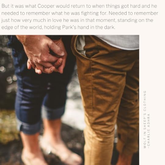“I’m in hell” Cooper muttered into Park’s neck, five seconds into their hug. He felt Park shake with suppressed laughter then squeeze him gently around the waist.The mystery felt a bit like a game of Clue. It was the werewolf in the laundry room, with the knife. Overall I really enjoyed the story and LOVED Cooper and Park together.