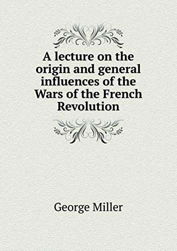 A lecture on the origin and general influences of the Wars of the French Revolution being the conclusion of a course of lectures on modern history, delivered in the University of Dublin This book, "A lecture on the origin and general influences of the Wars of the French Revolution", by George Miller, is a replication of a book originally published before 1811. It has been restored by human beings, page by page, so that you may enjoy it in a form as close to the original as possible.