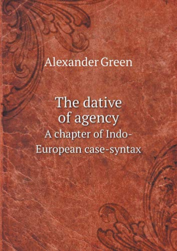The dative of agency. A chapter of Indo-European case-syntax This book, "The dative of agency A chapter of Indo-European case-syntax," by Alexander Green, is a replication of a book originally published before 1913. It has been restored by human beings, page by page, so that you may enjoy it in a form as close to the original as possible.