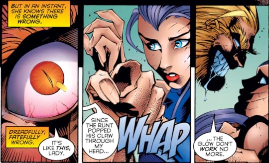 Unfortunately as a whole this volume is an incoherent mess, thanks in large part to the extraneous issues dumped in here (and in small part to the X-Babies digression). It's a pity, because at its best this volume does a good job of mimicking the character-driven stories of Claremont. However, this volume also includes the '90s at its worst, as exemplified by the Bloodscream issue of X-Men Unlimited, which is a mishmash including a stupid '90s villain.
