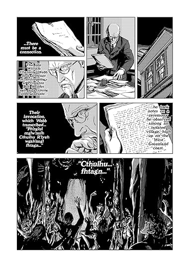It shouldn't be any surprise that we have another winner from Gou Tanabe. His art style remains perfect for capturing the immensity of Lovecraft's worlds along with the eldritch nature of his creations.This praise also extends to his depiction of the human characters. There is an unnerving energy to the panels focused on people's horrified expressions, and the action here is very fluid. The Call of Cthulhu is a short story that follows various people's accounts. With this being a visual medium the constant switching to different POVs did feel more noticeable compared to the original. It did lack the singular focus that made The Shadow Over Innsmouth more intense. That being said if you are a Lovecraft or Tanabe fan The Call of Cthulhu is another must read! Those last couple of pages were haunting. Cataclysmic is too small of a word to describe the inevitable destruction that awaits sleeping in the city of R'leyh but I'd say that Tanabe's pen still remains up to the task of depicting it.
