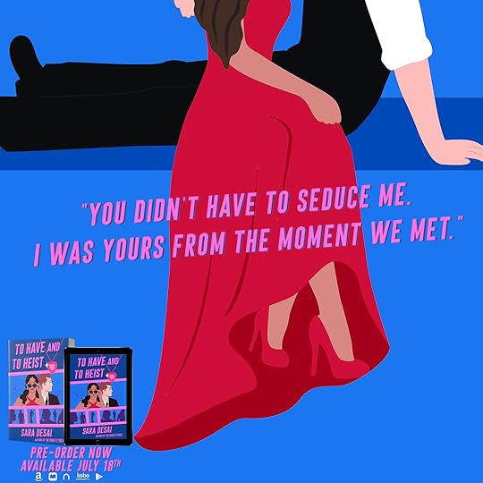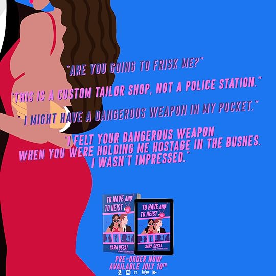 Every high stakes heist needs a crew, right? Simi corrals the most unlikely crew imaginable including BFF Chloe, her eighty year old landlady Rose, the mysterious Jack who she met hiding from the cops in the bushes when he took her captive, Cristian the womanizing gigolo who works at her dad’s tailor shop, Anil the good guy her well meaning parents are trying to marry her off to who still lives with his meddling parents, Emma her need for speed Uber driver and the big, brooding and dangerous Gage who acts as the muscle of the group. This cast of characters was the BEST! They added so much to the crew and the book. You can’t help but become enamored with them all. I wanted to be part of their crew while reading.