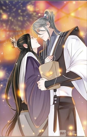 Illuminated by the faint light from the corner under the tower's roof, Yan Heqing's embrace around Xiao Yu'an's waist tightened. In the spur of the moment, he bent over and kissed Xiao Yu'an on the lips. The fragrance of the lingering liquor filled the air, and the bustling world faded away.