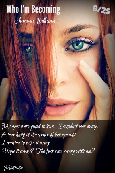 Who I'm Becoming is the fourth book in the Fire Nine series and it is MONTANA'S book! I fell in love with him in Who He Is and couldn't wait to read his story. Little did I know that I would have the pleasure of beta reading his book! The one thing I felt most important was for Shanora to keep true to Montana's character. So many readers, myself included, loved him most. To change who he is would be a disservice to his character. Who is Montana? Montana is the perpetual rock star/party animal. He is funny and brazen with a heart of gold. And that is what you will see in Who I'm Becoming.
