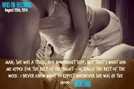 Now onto 'Who I'm Becoming' book four in the 'FireNine' series; Montana's story. Lol, for the first time in this series history... The dude- (Montana this go around) is not the ass holding secrets that can stop their whatevership in it tracks, it's Lauren. Haha haha