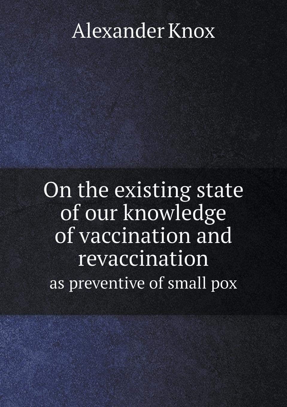 On the existing state of our knowledge of vaccination and revaccination as preventive of small pox. Being a comprehensive practical examination of the subject, as recently published in nos. XXIII and XXIV of The London Journal of Medicine. This book, "On the existing state of our knowledge of vaccination and revaccination as preventive of small pox," by Alexander Knox, is a replication of a book originally published before 1850. It has been restored by human beings, page by page, so that you may enjoy it in a form as close to the original as possible.