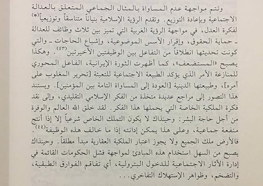 الكتاب رائع على الرغم من الكم الكبير من المصطلحات والأسماء والتعبيرات مجتمعةً على غير المتخصيين، يعيب الكتاب فقط أنه جاء فى شكل دراسة مقارنة أو مقابلة معتمداً على علم الاجتماع التاريخي ولو أنه عُنى بالتاريخ السياسى والاجتماعى والاقتصادى العربى فقط عبر خط زمنى واحد ومن ثم خصص باباً للتاريخ السياسى الغربى لكان أفضل للقارئ غير المتخصص. هذا الكتاب يواجه الفرضيات التقليدية التى تنظر إلى أن أى تغيير سياسى إسلامى يعتبر أقتباساً من نموذج آخر فى المجتمع الغربى ويفند هذا الاعتقاد الخاطئ عبر خط زمنى بدايةً من الإمام الغزالى مروراً بابن تيمية إنتهاءاً بعلى عبدالرازق وغيره من المحدِثين. لكننى أرى أن النظام الإسلامى ظل صامداً فى وجه تيارات التغيير والحداثة الغربية لقرون من الزمن إلى أن ظهر جيل فقد الارتباط بالجذور الإسلامية فأصبح من اليسير تطبيق أى نموذج غربى اجتماعى كان أو سياسى أو اقتصادى، أى فى الوقت الذى استبدل فيه المسلمون المصطلحات القرآنية بالمصطلحات الغربية، فالزكاة فى الإسلام تحولت إلى الضرائب المنظمة بقوانين وتم استبدال الجهاد فى سبيل الله بالجيوش المنظمة التى تتقاضى أجور نظير الدفاع عن البلاد أما الآن - وبعد قرون من الحرب بين الدولتان أو بالأحرى النموذجان الإسلامى والغربى - فطن الغرب أن العلاج الشافى لجميع الأمراض الاجتماعية والسياسية والاقتصادية قد نزل به القرآن الكريم قبل ١٤٠٠ عام فبدأ الغرب فى الوقت الذى ترفع فيه الدول الإسلامية معدلات الفوائد الربوية على الإيداع والإقراض إلى مستويات تاريخية غير مسبوقة، بدأت تهبط دول مثل ألمانيا وفرنسا واليابان بمعدلات الفائدة إلى أدنى مستوياتها وإلى قيم تقارب الصفر فى المائة، أى عملاً بما أنزله الله عز وجل على رسوله الكريم فى القرآن منذ أكثر من ١٤ قرناً من الزمان. من خلال قراءتك ستجد أن الإسلام أشمل وأعم من أن ينسخ تجارب الآخرين وأن الإسلام يفتح الباب أمام الاستفادة من التجارب الأخرى وتطبيق النافع منها بألياته وأدواته وليس بآليات غيره وأدواته. الكتاب يحتاج لمراجعة أطول وأشمل ولكن سأترككم فى النهاية مع الاقتباسين التاليين وأتصور أن الاقتباسين سيكونان دافعين لكم لقراءة الكتاب: