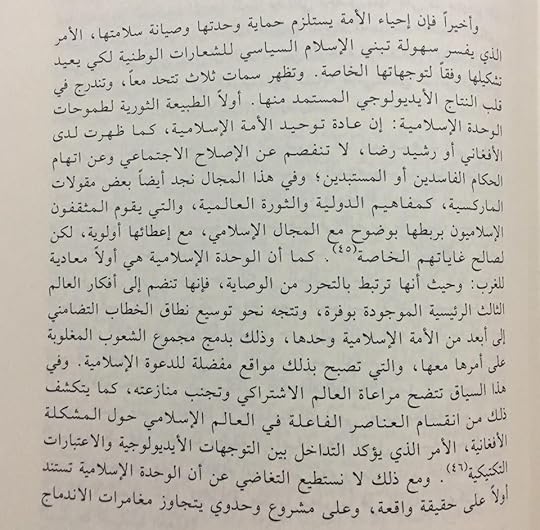 أنهيته في وقت مزدحم في العمل، ولذا لا وقت لدي لكتابة ملاحظات كاملة، ولكن أكتفي بأن فكرة الكاتب هنا أن التحديث السياسي الذي تم في الغرب الأوروبي هو تحديث مرتبط بعوامل ثقافية وتاريخية بل ولاهوتية خاصة بالغرب المسيحي، نشأ في بيئة فكرية خاصة مستجيبًا لما واجهه من تحديات حينها. محاولة فرض هذا التحديث على الشرق الإسلامي - بل والشرق المسيحي أيضًا، أي روسيا القيصرية - يعني أن هذه التحديات توجد كما هي في الشرق، وألّا تحديات يواجهها تحديث من أي نوع إلا هي. لا يحسم الكاتب موقفه بالكلية من الطبيعة الثقافية المحلية للتحديث، فلا يستبعد أن يتأثر التحديث الإسلامي بالغربي، ليجد صيغته الخاصة.