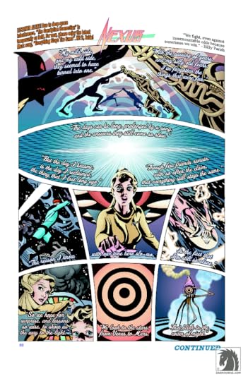 If you've never read Nexus, this is both a good and bad place to start. It does have Nexus's origin story. These newspaper style one page installments though are quite dense. You're better off taking many breaks reading them instead of straight through. They also take blowing them up really large on your computer to really do them justice. Still, Nexus is where Steve Rude just kicks ass as a cartoonist. These pages are amazing. Inventive page designs and layouts, great character designs, eye-popping colors. Steve Rude is "The Dude". (Seriously, that's his nickname.)