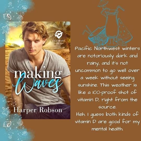 Making Waves is a spicy, frenemies-to-lovers, tropical vacation M/M romance. It features only one bed, loads of beachy shenanigans, friends who are family, and plenty of proof that opposites do, in fact, attract.