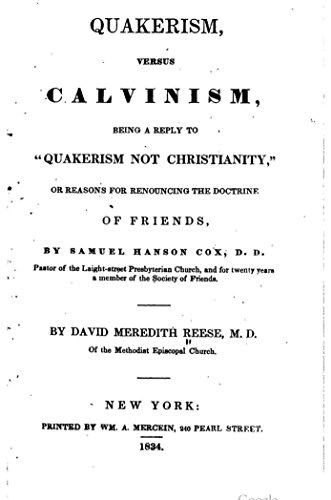 Quakerism, versus Calvinism, being a reply to Quakerism not Christianity by David Meredith Reese. This book is a reproduction of the original book published in 1900 and may have some imperfections such as marks or hand-written notes.