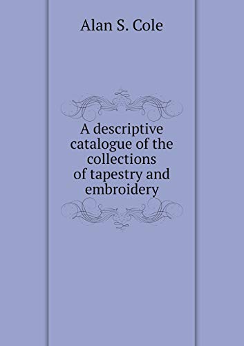 A descriptive catalogue of the collections of tapestry and embroidery in the South Kensington Museum. This book, "A descriptive catalogue of the collections of tapestry and embroidery," by Alan S. Cole, is a replication of a book originally published before 1888. It has been restored by human beings, page by page, so that you may enjoy it in a form as close to the original as possible.