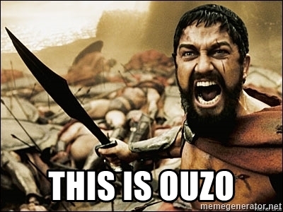 Note, for those of us who didn't know until 5 minutes ago that ouzo was even a word, let alone referring to something rather substantial: ouzo is a sort of Greek alcohol.