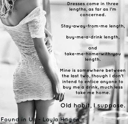 I really like Jessica and Parker together, they balance each other out. Layla Hagen does wonderful job of capturing the emotional tumult involved in falling in love and opening yourself up to love. I truly enjoyed reading Found in Us and can't wait till I can read Dani's story with the dark haired hottie.