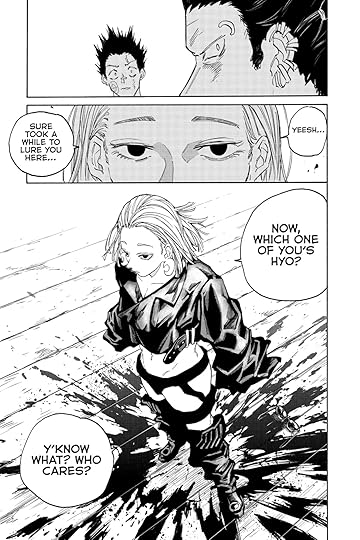 I read this one too soon after the previous volume so I don't remember if the flashback arc ended here or there. I think here. Anyway, the arc was good, but it was kinda just wheel-spinning. It doesn't teach us anything too new about Slur other than a) he didn't like killing and b) Rion seemed to teach him to fight for his friends. This leads into the intro of two to four new members of Slur's group ("to four" because we see two, and two more are alluded to, but don't yet make appearances). The most important thing is that Rion is assumed to be secretly alive, which isn't really something we needed the flashback for, but whatever. It's a balance between "this doesn't add anything to the Whole" but "it's good on its own," which is okay for a manga arc. I mean, I judge other manga more harshly for having seemingly disconnected arcs, but my favorite manga is Dragon Ball in which Buu has nothing to do with Freeza or Cell. So....