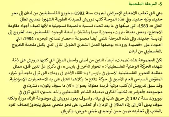 هذه مقتطفات من مقالة لصبحي حديدي عن الأطوار الشعرية لدى محمود درويش تتناول الطور الرابع والخامس وهي التي تتمثل في الأعمال الشعرية الواردة في هذا الكتاب :