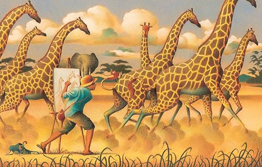 A book entirely without words, encouraging your child to create their own explanations for the artistic safari that takes place. I Love all the different animals, and enjoyed the artwork. There's nice bits of humor throughout. I wish I could go on a drawing excursion like this!