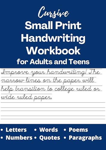 Cursive Small Print Handwriting Workbook for Adults and Teens: Neat Penmanship Practice Book - Trace and Learn Letters, Numbers, Quotes, Poems and Paragraphs!