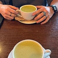 Dans une cuisine, une femme regarde la photographie d'un gâteau dans un livre de recettes.