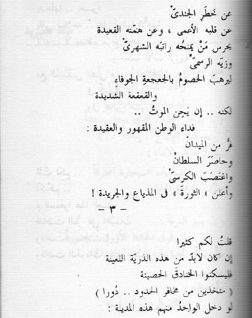 قلت لكم في السنة البعيدة عن خطر الجندي عن قلبه الأعمى، وعن همته القعيدة يحرس من يمنحه راتبه الشهري وزيه الرسمي ليرهب الخصوم بالجعجعة الجوفاء والقعقعة الشديدة لكنه.. إن يحن الموت.. فداء الوطن المقهور والعقيدة: فر من الميدان وحاصر السلطان واغتصب الكرسي وأعلن "الثورة" في المذياع والجريدة