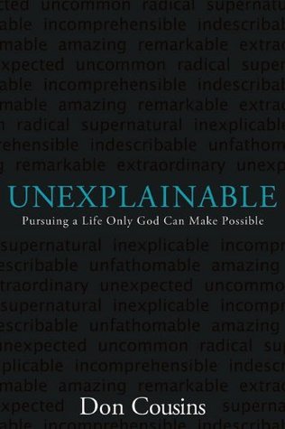 Well, today's book, Unexplainable: Pursuing a Life Only God Can Make Possible, kind of matches those words. God's will and purpose for your life may seem totally contradictory to everyone around you. I love the premise of this book - God is beyond us. And a life lived in Him will be completely unexplainable to everyone around except in the context of God. And such a life will invariably point to Him and give glory to Him.