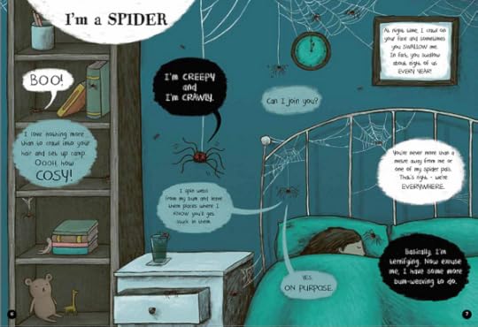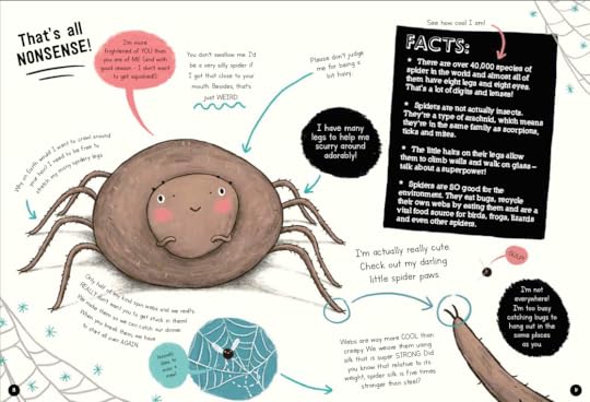 My daughter was initially a little scared by the book at the very first page, because it showed a scary looking spider and said it did things like "At night time, I crawl on your face and you may swallow me. In fact, you swallow about eight of us EVERY YEAR!"). She didn't like it at all and asked to read something else, but she was happy and relieved at the next page when the friendly looking spider said how ridiculous that was and gave actually factual information and lots of interesting true facts.