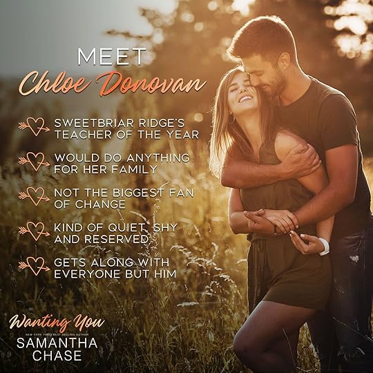 WANTING YOU is the third in Samantha Chase's small-town series The Donovans: Sweetbriar Ridge. Kindergarten teacher Chloe Donovan loves her life. She loves her students, and loves her town, and loves that her secret hobby of creating gasp-worthy cosplay is taking off by leaps and bounds. When retired competitive skier Tanner Westyn moves to town AND accepts the new kindergarten teacher opening at her school, he immediately gets off on the wrong foot with Chloe.