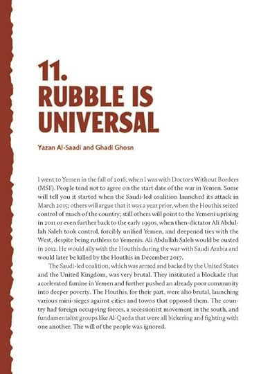 I thought this was a great entry point into the social/political issues in this area of the world. I especially liked the chapter about MSF and how it was essentially an imperialist organization (I was unaware) and the chapter where Al-Saadi was reflecting on how his argument with a Cuban national was misguided when years later it was turned back on him about his own country and the realities of life there. The chapter on whose lives matter more in this world (in terms of wealth and geographic power) was also insightful. The illustrations were detailed and the footnotes describing them provided an in-depth glimpse into the thought process behind each panel. I enjoyed reading this book.