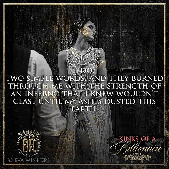 Kinks of a Billionaire is book five in Eva Winners' Billionaire Kings series. A series which follows a different leading man in the mafia world down his own dark, debauched and dangerous journey, often picking up a woman on the way whom they weren't expecting, didn't want or tried their best at resisting their temptations.