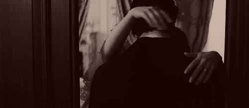 did I mention he has shoulder-length hair and shaky hands stop mid-air on their way to cup her face?
