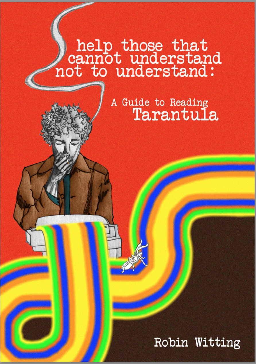 Robin Witting’s new book, help those that cannot understand not to understand, is available exclusively through ISIS magazine. This e-book is the last word on Dylan’s mid-Sixties poetic novella; a striking snapshot of the artist as a young man. Tarantula was written during that frenetic fifteen-month period of 1965-66 when Dylan produced three of the most groundbreaking albums in music history: Bringing It All Back Home, Highway 61 Revisited and the double album Blonde on Blonde. On his turbulent 1966 world tour, Dylan was carrying around not only the Blonde on Blonde acetates but the Tarantula galley proofs as well. Written in a concise, straight-talking manner, using bullet points and examples, Witting guides the reader through Dylan’s sophisticated but much misunderstood 30,000-word prose-poem, holding their hand as they go. Witting has been untangling this spider’s web since the early Nineties and this new work is the culmination of decades of devotion to cracking the code. While Witting does not pretend to have all the answers, he comes closer than anyone to unpacking Tarantula’s secrets. If you haven’t had faith in Tarantula before, give yourself one last chance. If Robin Witting can’t convince you of its beauty, no one can.