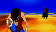Luffy’s exchange with Crocodile in the desert, when the latter asks why he’s willing to fight for this princess he just met, is quintessentially Luffy: “Luffy: Vivi’s strength isn’t in her muscles, it’s in her heart…She feels compassion for everybody, so she never stops fighting. She doesn’t want a single person to get killed in this rebellion. Crocodile: …Easy for someone who’s never been in a battle. Don’t you agree? Luffy: That’s right. But as long as you’re still around, she’ll kill herself trying to stop you. So I’m gonna finish you here.” Much later on in this story, Luffy will claim that he’s not a hero, because heroes will “give the meat to everyone else” and leave nothing for themselves (as Vivi is doing). He values his own freedom and enjoyment of life too much for that. But he can respect a hero, and try his best to keep that heroism from turning tragic. Of course, Crocodile is a tougher opponent than anyone Luffy has faced before!
