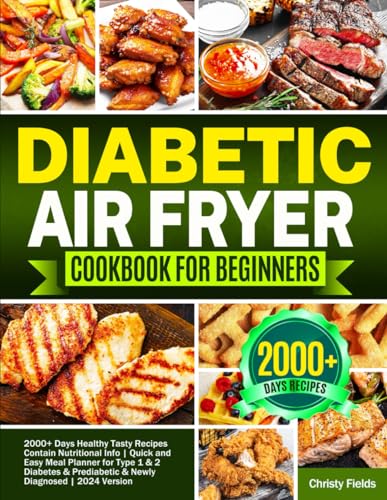 Diabetic Air Fryer Cookbook for Beginners: 2000+ Days Healthy Tasty Recipes Contain Nutritional Info | Quick and Easy Meal Planner for Type 1 & 2 ... Prediabetic & Newly Diagnosed | 2024 Version