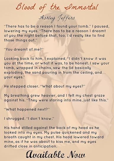 Blood of the Immortal is the first novel I've read by Ashley Jeffers. I'm always down for a good vampire story to see how different authors twist the lore. To say Arielle and Zachary's story starts off with a bang is an understatement. In fact, I found myself trying to catch my breath the entire saga. I say saga because, even though this is book one of a trilogy, it was so packed full of action and information that I found myself re-reading pages to make sure I fully understood what was taking place .