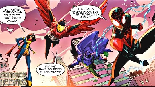 Hobgoblin's getting his gear upgraded by Rabble (and so do the Enforcers). Miles has Starling get his friends together (Shift, Ms. Marvel, Misty Knight and Colleen Wing) to keep Hobgoblin from grabbing any land in this gang war. === Bonus: New Prowler cameo AND OG Prowler appearance (now..Hornet??) FTW Bonus Bonus: Rabble is SO broken. Is this PTSD or something worse??