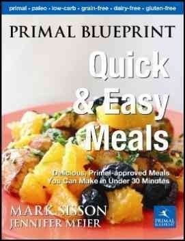 On the heels of the phenomenal success of The Primal Blueprint Cookbook, and in response to the growing demand for healthy meals that can be made with minimal time and effort, Quick & Easy Meals delivers over 100 mouth-watering recipes with easy-to-follow instructions that will get you in and out of the kitchen in 30-minutes or less. Now the dream of eating satisfying meals--even with little time to spare--controlling weight and feeling great has become a reality. Make your transition to Primal eating easy and fun with this innovative cookbook from Primal Blueprint author Mark Sisson, and acclaimed chef/food writer/photographer Jennifer Meier. With 300 brilliant, glossy, full-color photographs and dozens of Quick & Easy Tips throughout the book you'll see how delicious and simple to prepare Primal dishes can be. Save time with intuitive recipe steps, easy navigation, and great visual support. You'll find recipes for every traditional meal time -- Breakfast, Lunch, Dinner, Appetizers and Snacks -- and recipes for Sauces, Toppings and Rubs, which effortlessly turn bland salads, meats and hors d'ouevres into unique culinary creations. And with the "Time in the Kitchen" listed for each recipe you'll know exactly what to expect, be it 30 minutes or five. As detailed in The Primal Blueprint, losing excess body fat is all about insulin. Regulate insulin production by eliminating grains and sugars and you will lose weight, even if you don't exercise much or are cursed with the "fat gene". Quick & Easy Meals makes this easier than ever, showing you how to transition from the great American grain-based diet to a Primal Blueprint diet featuring meat, seafood, fowl, vegetables, fruits, nuts, and seeds. Each recipe has a naturally low glycemic impact and comes with a complete macronutrient profile, so you know exactly what you're putting in your body – no guesswork required. As you build momentum for Primal eating, you'll find that you won't even miss the boring, low-fat, high-carb foods that previously were the central focus of your diet. And no matter your experience in the kitchen you'll learn how to prepare delectable dishes like Bacon Souffle Frittata, Dill and Caper Salmon Burgers and Chorizo and Almond-Crusted Halibut. This isn't a crash course diet, and this won't be a cookbook that collects dust on your bookshelf. These and other Primal recipes provide the foundation for a lifetime of healthy eating that you'll eagerly come back to again and again.