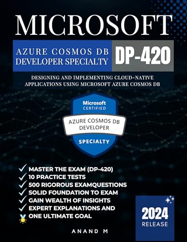 Elevate your career in cloud-native application development and database management with the definitive "MICROSOFT CERTIFIED AZURE COSMOS DB DEVELOPER SPECIALTY - MASTER THE EXAM (DP-420)." In a technology-driven world where efficient data handling and scalability are paramount, mastering Azure Cosmos DB is a critical step for those aspiring to thrive in this field. This book is your compass to navigate the complexities of the DP-420 exam and emerge victorious. Why This Book? The journey through the intricate landscape of Microsoft Azure Cosmos DB can be overwhelming. We've streamlined this journey for you. Furnished with 10 meticulously designed practice tests, our guide offers an expansive array of 500 carefully formulated questions. These questions transcend basic recall, challenging your understanding and bolstering your technical acumen. Delve into detailed explanations that simplify complex ideas, making them digestible and manageable. Key 500 Detailed Questions and We prioritize quality, ensuring each question emulates the style and intricacy of the actual DP-420 exam.Expert Each answer is accompanied by an explanation that sheds light on the reasoning behind it, deepening your comprehension of the underlying concepts.10 Full-Length Practice Experience an authentic exam atmosphere. Gauge your preparedness and refine your strategy.One Ultimate This book aims not just to help you pass the exam but to provide a profound understanding of designing and implementing solutions using Microsoft Azure Cosmos DB, equipping you for real-world scenarios.Why Microsoft Certified Azure Cosmos DB Developer Specialty Certification? In today's landscape where efficient and scalable data solutions are paramount, the Microsoft Certified Azure Cosmos DB Developer Specialty certification is more than just a credential. It's a symbol of your expertise, commitment, and proficiency in one of the most advanced and flexible database platforms in the tech industry. Suitable for experienced developers and newcomers alike, this certification—and our guide—can significantly influence the trajectory of your career. Guarantee your success in the Microsoft Certified Azure Cosmos DB Developer Specialty (DP-420) exam. "MASTER THE EXAM (DP-420)" isn't just a study aid; it's your strategy for triumph. Crafted with precision for excellence, this book isn't just about clearing an exam; it's about mastering it. For those dedicated to a future in database technology and eager for a reliable guide on their preparation journey, this book is an invaluable resource. Transform your study process, understand the nuances, and walk into the examination hall with absolute confidence. Master the Microsoft Certified Azure Cosmos DB Developer Specialty (DP-420) exam today and propel yourself to the forefront of your field!