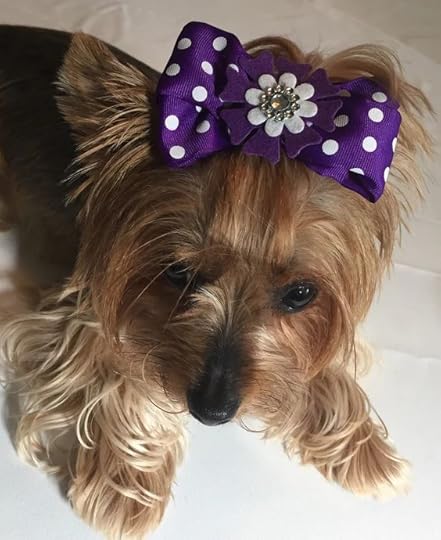 This is Spike: A scruffy three-legged Yorkshire terrier with an incongruous purple bow on top of his tufty head crept into view. He was exceedingly small and very scared.